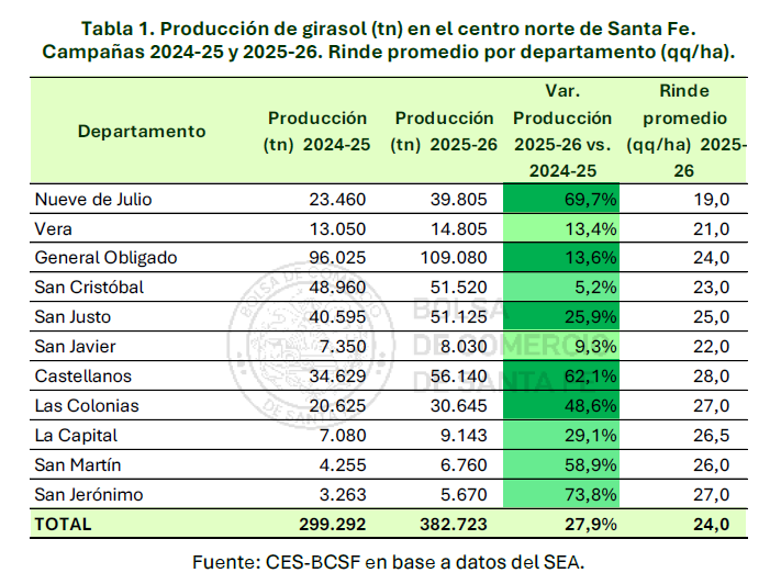 Según el último informe del Centro de Estudios y Servicios de la Bolsa de Comercio de Santa Fe, la oleaginosa alcanzó 382.700 toneladas, el volumen más alto desde que se tienen registros sistemáticos en la región, superando en casi un 28% a la campaña anterior.