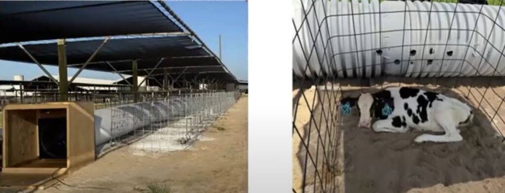 El investigador comparte una interesante diapositiva que muestra un tambo donde el aire fresco se desplaza a través de un tubo, asignando placidez a unos terneros, en momentos de una temperatura ambiente muy alta.
