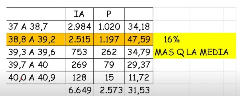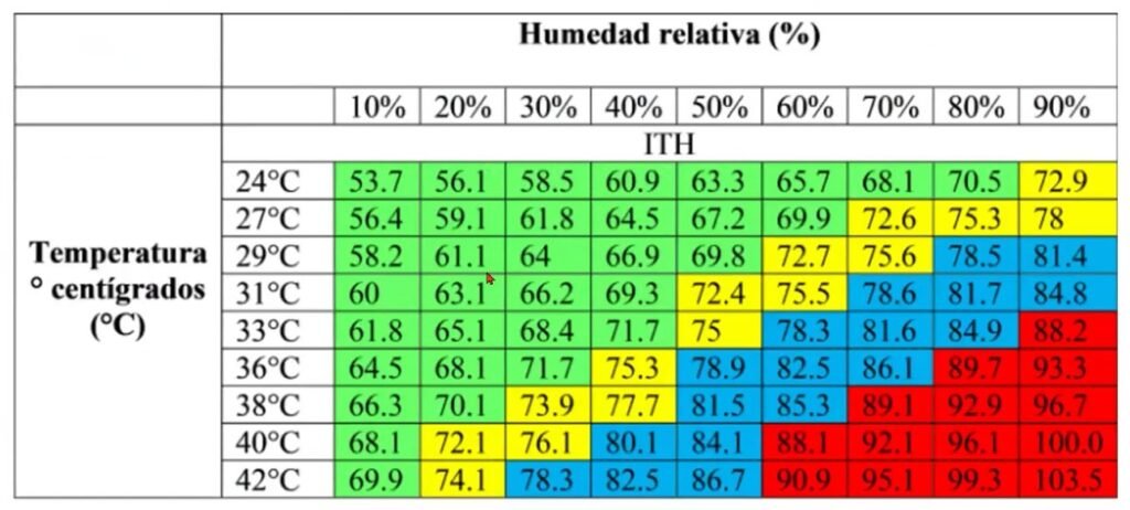Veamos esta interesante relación entre temperaturas y humedad al momento de inseminar. Muchas veces se pone el énfasis en la temperatura ambiente pero la humedad es un elemento determinante: a veces se tiene una temperatura apropiada pero la humedad restringe la perspectiva de lograr una preñez eficiente.