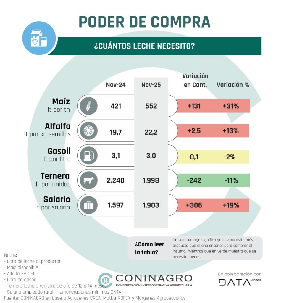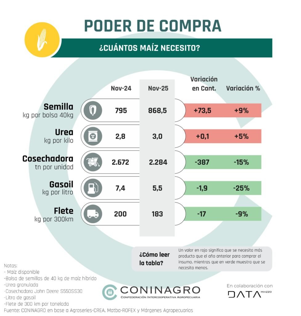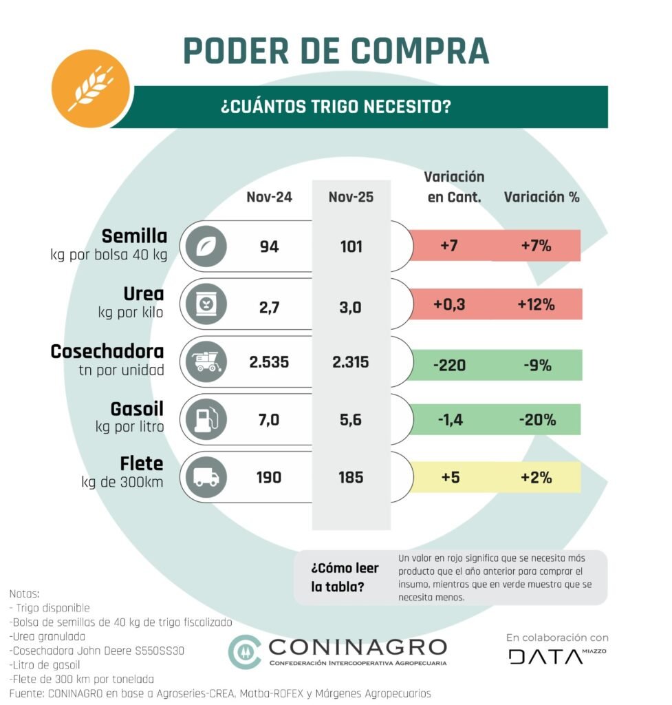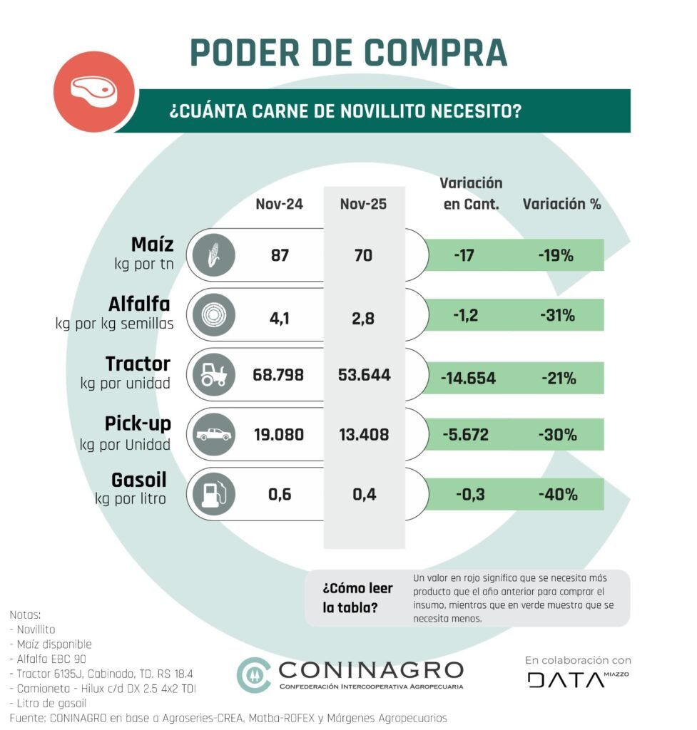 CONINAGRO presentó su informe mensual que analiza el poder de compra de siete productos clave de la producción agropecuaria en Argentina: soja, maíz, trigo, ternero, novillito, leche y a partir de esta edición suma yerba mate. Este indicador mide la capacidad de estos productos para adquirir una amplia gama de insumos, costos e inversiones del sector agropecuario, que incluyen herbicidas, fletes y maquinaria, y 20 variables más que se analizan.