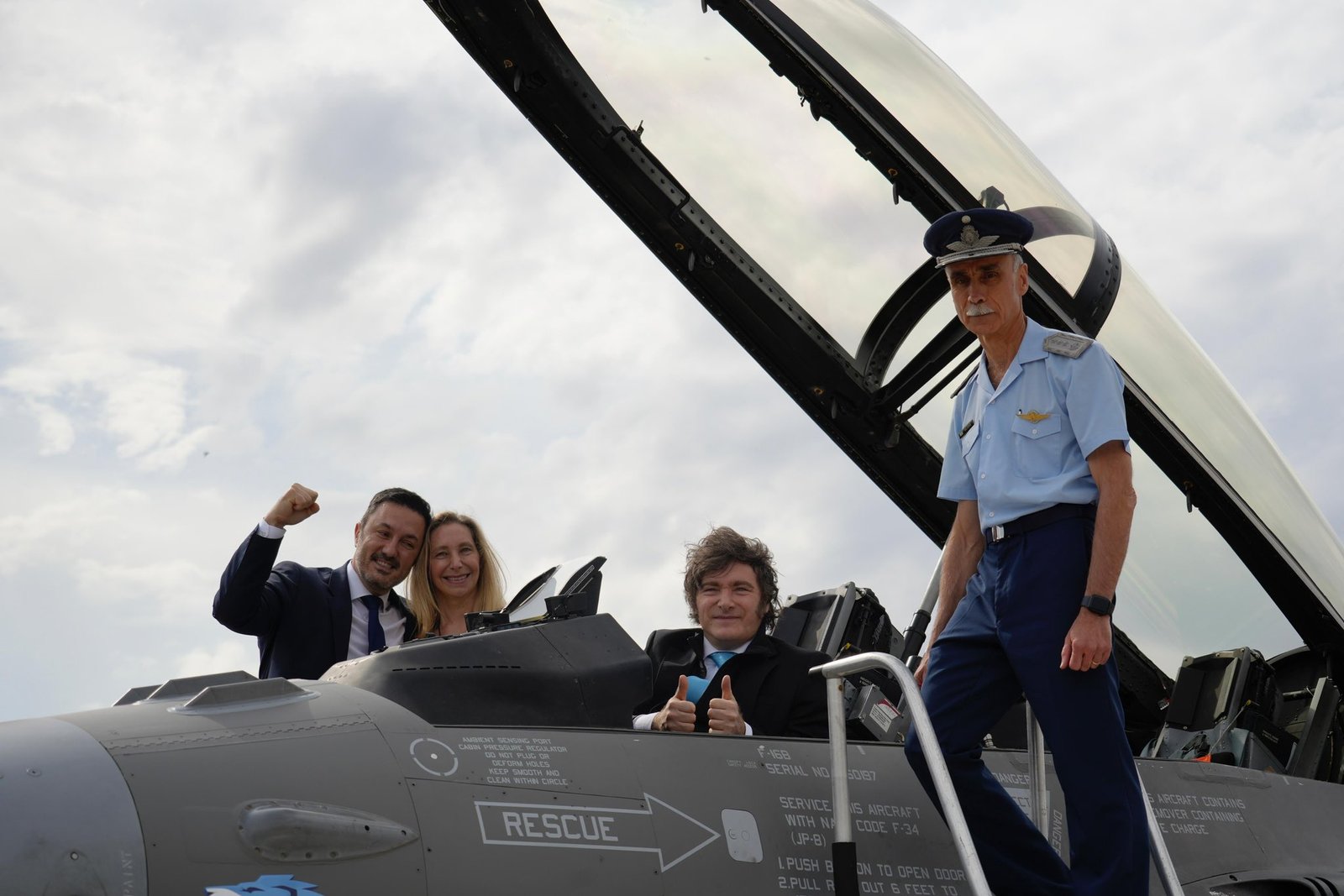 Ese sobrevuelo fue el prólogo de una jornada planificada por la Casa Rosada: el arribo oficial de los F-16 al Área Material Río Cuarto y el acto central liderado por Javier Milei, quien voló de Buenos Aires a Córdoba mientras seguía la operación y preparaba el discurso que reiteraría más tarde: Argentina volvía a tener “ángeles protectores” en sus cielos.