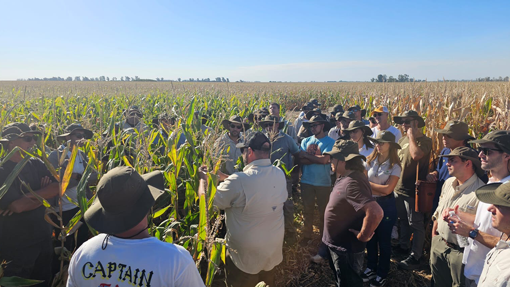En los Centros de Entrenamiento de Maíz, la dinámica también combina teoría y campo. En los encuentros se abordan las bases ecofisiológicas del cultivo, cómo se construye el rendimiento, cómo la elección de la fecha de siembra determina la oferta de recursos disponibles, y cómo impactan los riesgos climáticos y la presión de plagas y enfermedades durante el período crítico.