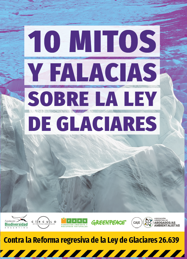 Con el objetivo de brindar rigurosidad técnica y científica, las organizaciones Asociación Argentina de Abogados/as Ambientalistas – Caje, Fundación Ambiente y Recursos Naturales, Greenpeace Argentina, Fundación Biodiversidad y Círculo de Políticas Ambientales lanzaron  el documento 10 Mitos Y Falacias Sobre La Ley Nacional De Glaciares”, en el que analizan críticamente los argumentos utilizados para justificar la reforma y refutan afirmaciones que carecen de evidencia o sustento empírico en los datos.